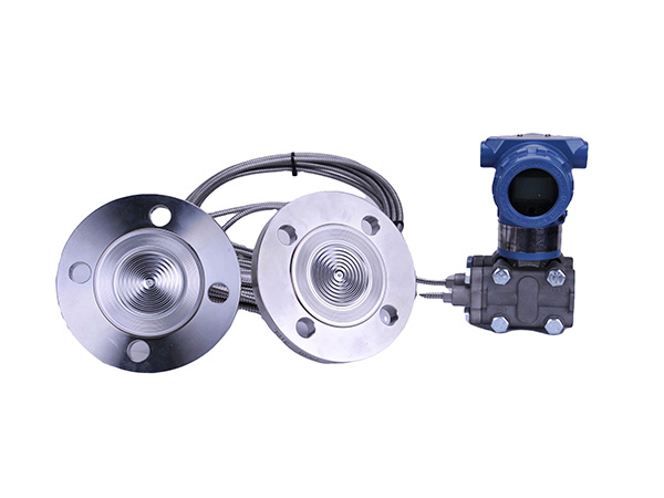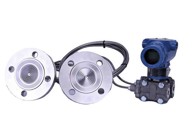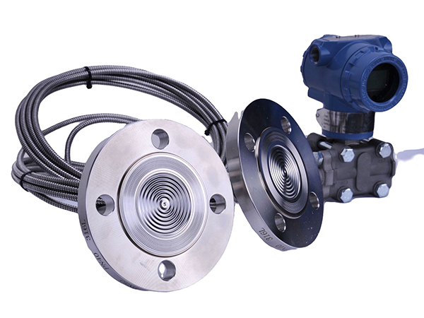 一、产品概述:FG400-RD型双法兰隔膜差压(液位)变送器采用金属电容传感器,基本原理是、将一个空间用敏感元件(多用膜盒)分割成两个腔室,分别向两个腔室引入压力时,传感器在两方压力共同作用下产生位移(或位移的趋势),这个位移量和两个腔室压力差成正比
