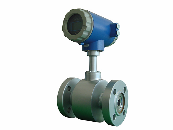 测量流量时,流体流过垂直于流动方向的磁场,导电性液体的流动感应出一个与平均流速(亦即体积流量)成正比的电压,因此要求被测的流动液体具有最低限度的电导率。其感应电压信号通过二个与液体直接接触的电极检出,并通过电缆传送至放大器,然后转换成统一输出信号。这种测量方式具有如下优点: